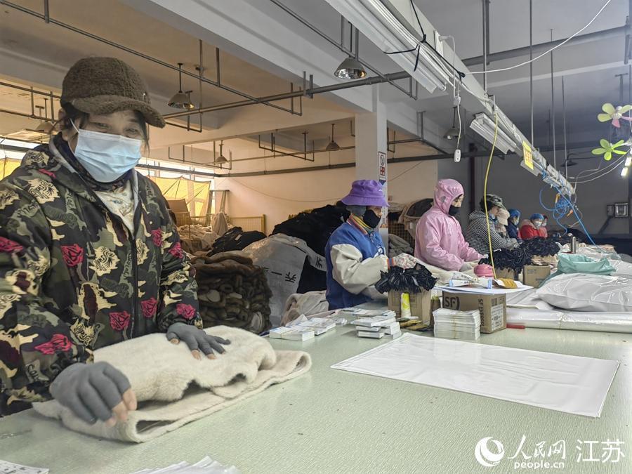 工人打包环保皮草产品。 人民网记者 张玉峰摄