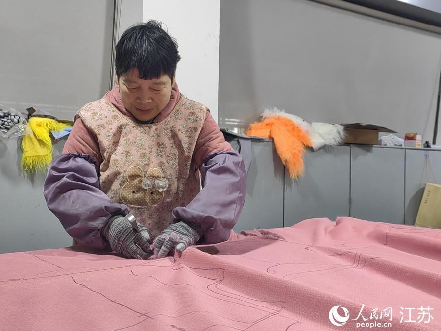 当地环保皮草生产中仍保持手工裁剪工艺。人民网记者 张玉峰摄春节前夕,江苏徐州新沂市墨河皮草产业园内生产忙碌,这里生产的围巾、帽子、手套“三件一体”日销量较往年同比增长200%。据当地商户曹勇说,其储备的50万件货已销售一空,工厂正在有序组织生产。
